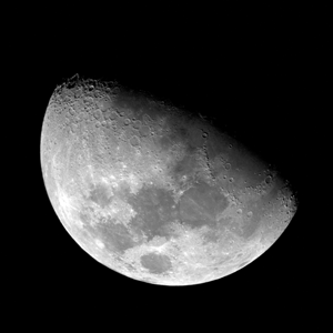 Es lo que mejor se ve, con cualquier telescopio y con cualquier aumento. El mejor momento para verla es en cuarto creciente o menguante, no en Luna Llena. Tiene cráteres de hasta 200 km de tamaño. Con un telescopio de 114 mm., se pueden ver detalles de hasta 3 km. de tamaño.