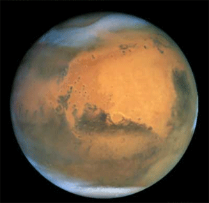Es un planeta pequeño, por lo que también se ve pequeño al telescopio. Se pueden ver, principalmente durante las oposiciones (mínima distancia a la Tierra), algunas manchas superficiales, y los polos blancos de nieve de agua y hielo seco. El aumento mínimo para la observación es 100x. Con un filtro azul se mejora la visión de las nubes. Con un filtro rojo, los detalles superficiales.